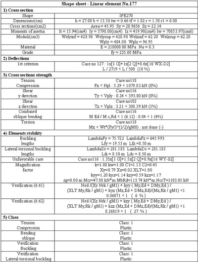 You can generate a report with these results starting from the element’s shape sheet. This result is complete with all verifications and also mentions the corresponding article in the Norm.