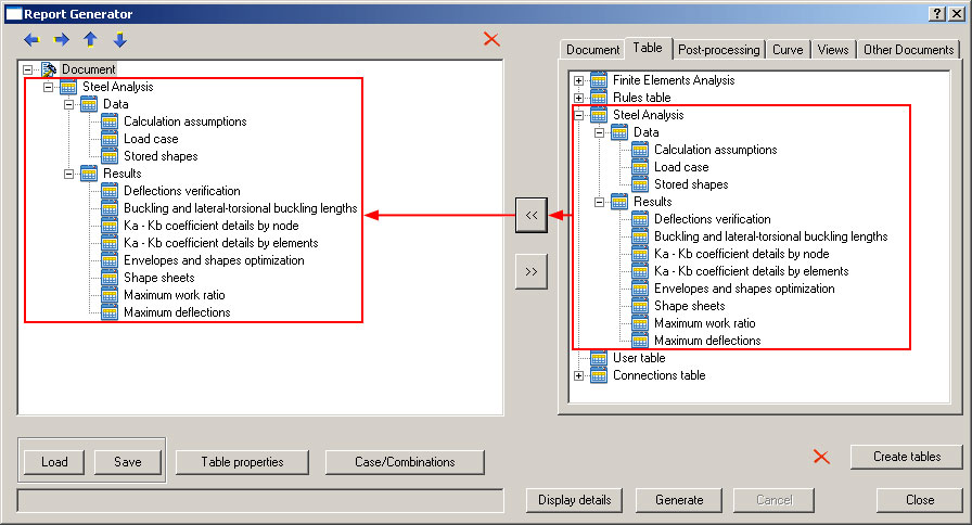 The steel verification report offers a complete diagnosis of the model in different outputs: tables, texts, graphical post-processing. The report can be customized to suit your requirements.
