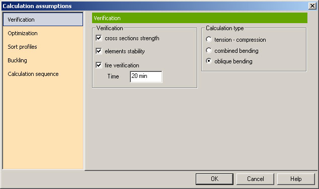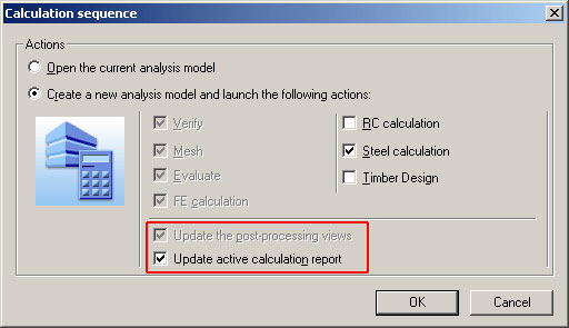 The calculation assumptions referring to the calculation type, the steel optimization, the buckling parameters, the calculation sequences, etc. can be globally defined through a single operation, for all steel elements of the model: