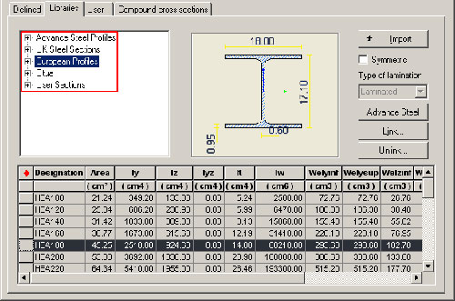 Advance Design provides complete libraries of materials (e. g., EN 10025-2, EN 10210-1, EN 10219-1) according to chapter 3 of EN 1993-1-1 and the possibility to define materials with custom properties. For cross sections, libraries such as European Profiles, Otua, UK Steel Sections and Autodesk Advance Steel Profiles are available. Also, you have the option to define libraries with customized cross-sections and even compound cross sections.