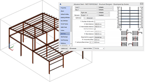 Since the version 2017, Advance Design includes the Steel Structure Designer. The Steel Structure Designer incorporates an extensive range of building definitions and tools enabling users to configure complete structures in seconds, from standard building shapes used in industry (platforms, steel halls), to more complex models, such as office buildings or structures with curved roofs, in seconds.