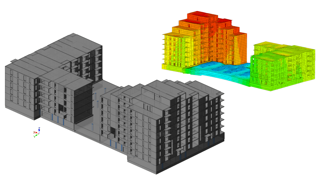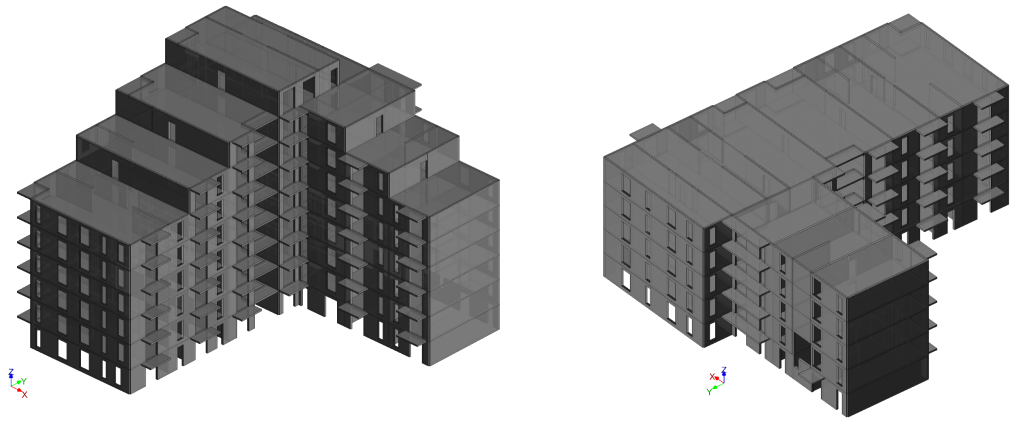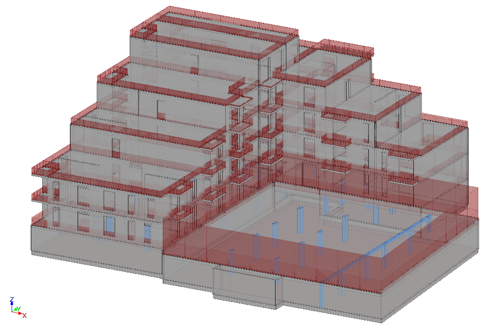 Here you can see a 6-story residential building of a concrete structre. It was imported directly from Revit. All loads are already generated and the model is ready to be calculated.
