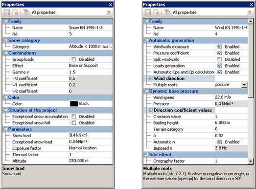 - Create load case families for snow or / and wind and configure the advanced properties (if necessary).