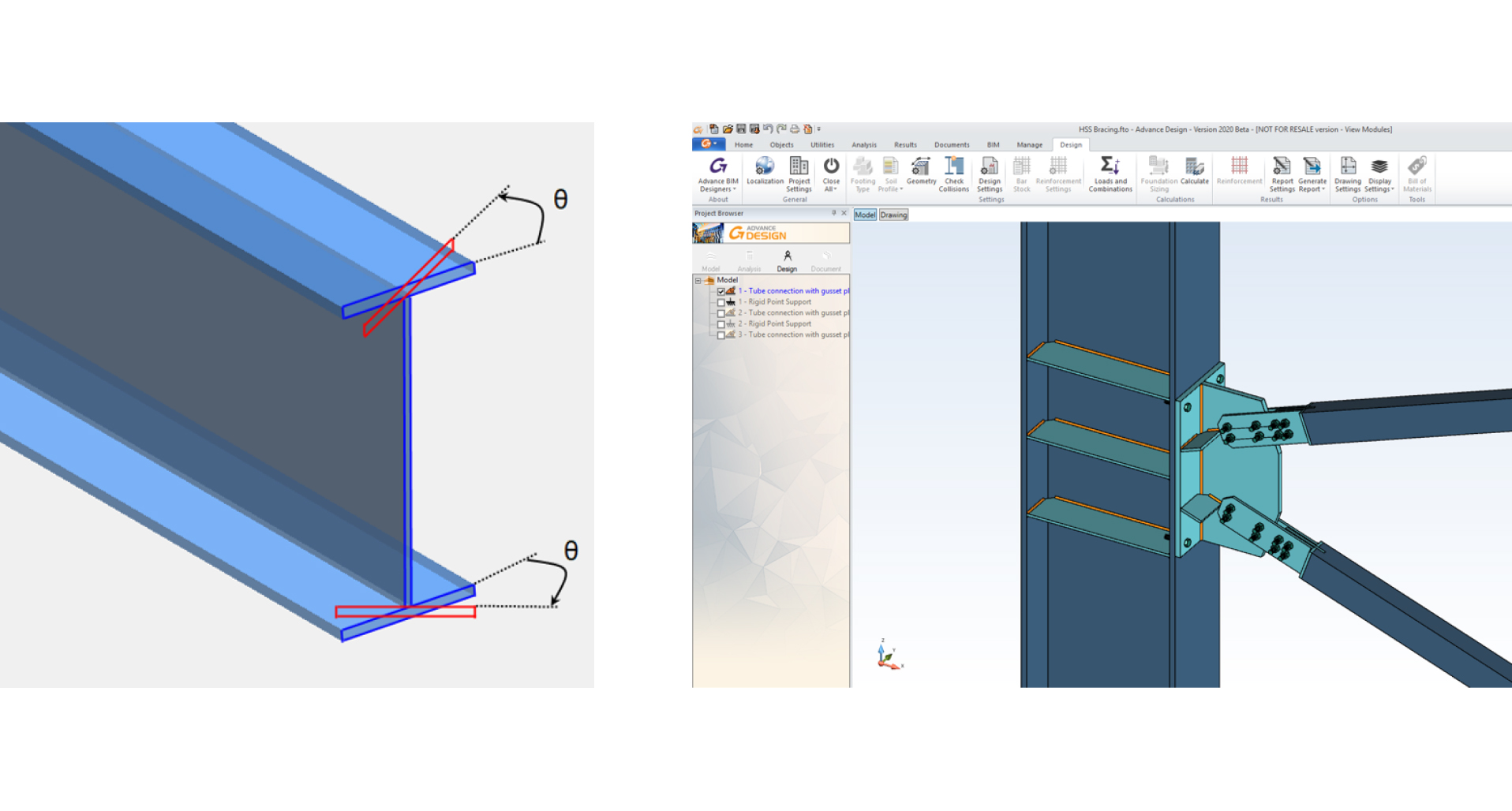Design welded or bolted connections using analytical formulas or advanced FEM calculations using ADC.