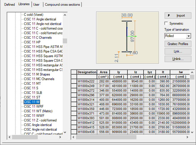 Steel profiles from the CISC 11 catalogue (the 11th CISC handbook) have been updated. The changes mainly concerned with changes in naming, adding missing profiles to catalogues and slight changes in the values of the characteristics for a few selected profiles.