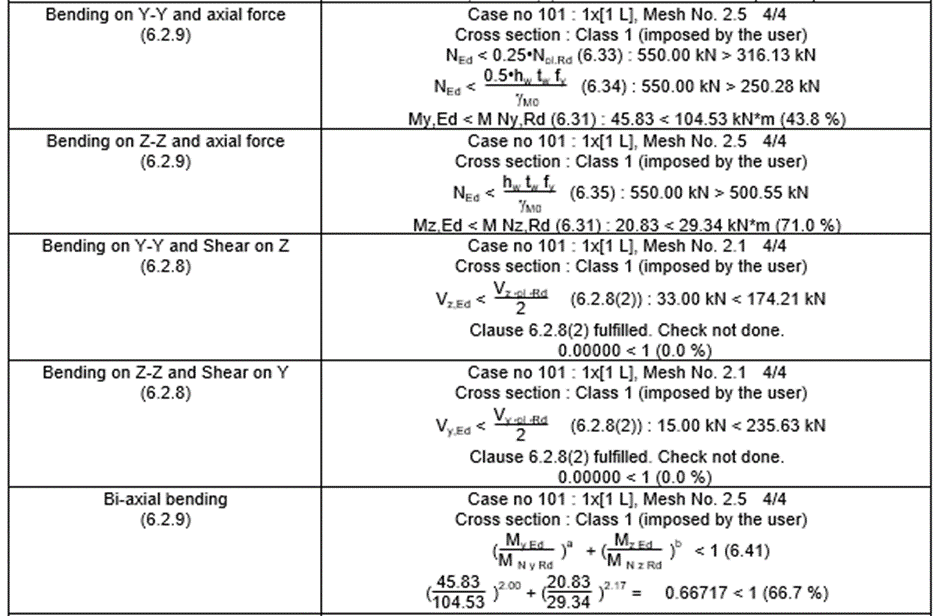 - Replacing the oblique bending check by bending with an axial force, bending with shear forces, and biaxial bending checks.