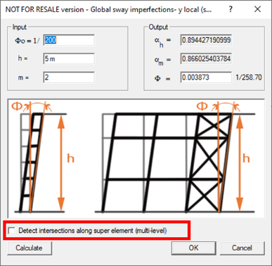 Steel columns defined as superelements can be used for the automatic generation of imperfections (according to Eurocode 3). During the generation of forces, the user can decide whether to consider the elements that intersect the superelement.