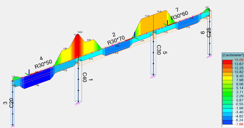 The super element concept is now applied to the concrete linear elements for the reinforcement design according to Eurocode. This gives a possibility for the design of multiple span beams having different height and support widths as a single element