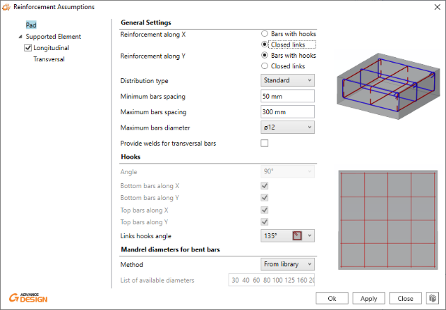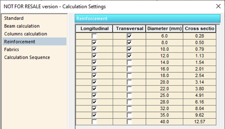 In order to enable the calculation of the real reinforcement with the use of reinforcement diameters used on the Polish market, new diameters (18, 22, 28, and 35) have been added to the list of reinforcement bar diameters available on the reinforcement settings window. This change is available for projects having the localization set to Poland.