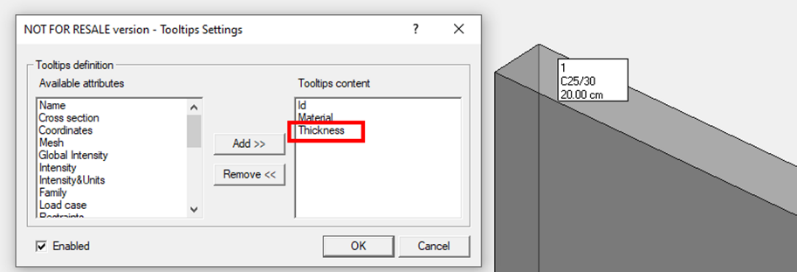 The Thickness property has been added to the list of available attributes to be selected for the content of tooltips.
