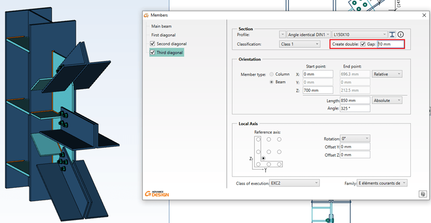 The 2021.1 update of Advance Design Steel Connection offers a new configuration for the Gusset Joint – the double angle section for one, two or three diagonals