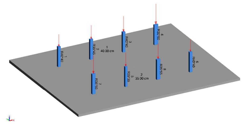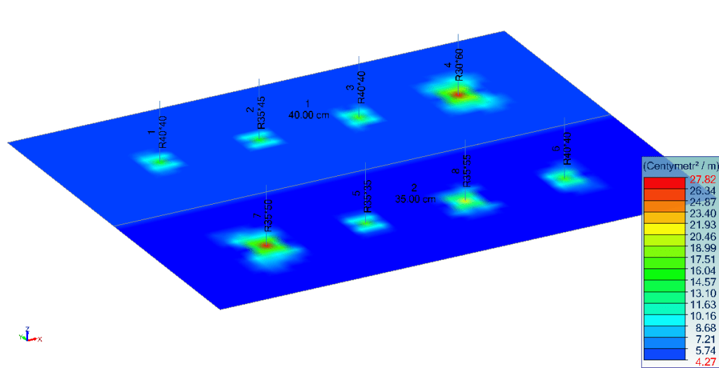 In the example, the design calculations of reinforcement in reinforced concrete slabs were carried out, as well as the verification of the shear punching along with the determination of the required reinforcement.
