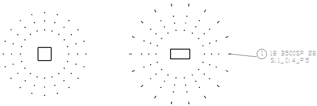 In addition to importing geometric information, the script can complement a number of other data. For example, for created rebars the „mark” parameter could be modified by combination of ID numbers of a floor + column + perimeter. Depending on the needs, we can group the bars in various ways, as well as add some shared parameters with the identification data, in order to be able to use them in reinforcement tables, tags or filters.