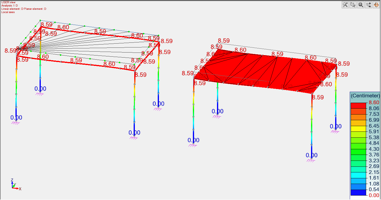 For example, the response of the DOF constraint is compared with the response of a membrane in a simple 3D structure subjected to lateral loads. In this model, the elements’ self-weight is not considered.