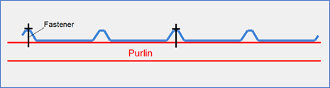 Assume a purlin connected to the following trapezoidal sheeting, at each rib:
