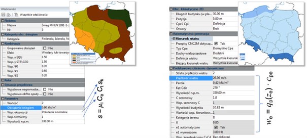 The operation itself is trivial – the parameters we need to establish are those that are not possible to establish from the model but result from the project assumptions (altitude, thermal coefficient, terrain category, etc.).