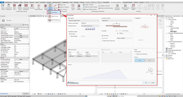 The PowerPack Detailing allows you to address this topic with the Split Rebar command.