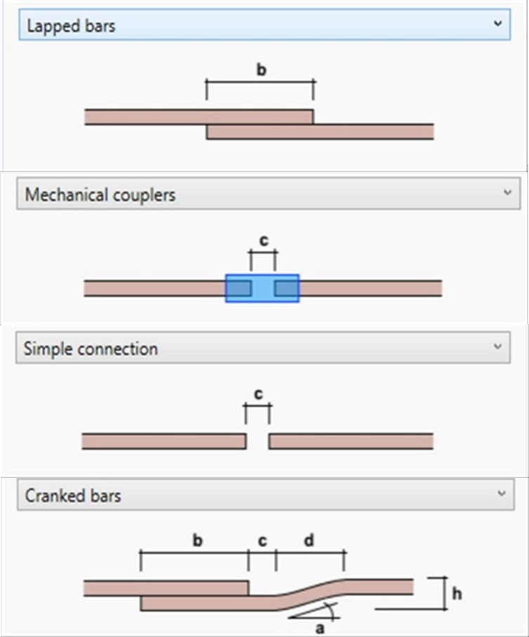 2. The method of connection for splitting bars with four options proposed