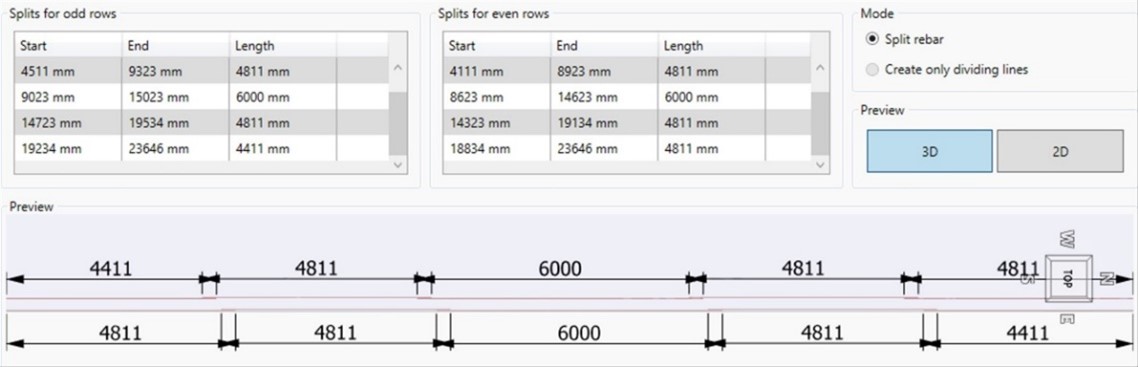 In addition, an option will allow the user to create an alternate distribution after splitting the rebar set.