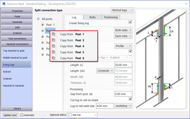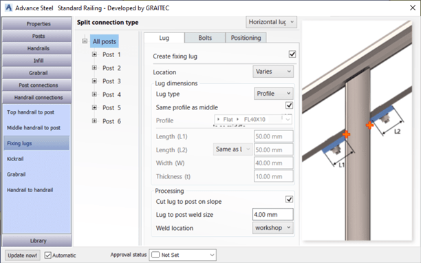 Within the premium model, particularly for Stairs and Railings we have a great new feature for those working with panelised balustrades/railings, that is the inclusion of ‘Lugs’ to the panels.