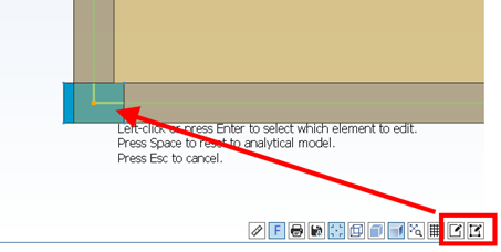 After importing the slab model into the RC design slab module we’ll see the outlines of the supporting elements and the edges of the analytical slab model (green lines in the images below). While the analytical model cannot be modified at this point, we can automatically modify the external geometric contour of the slab.