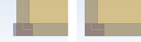 -> extend the geometric contour to the outer contours of any supports (beams, walls and columns). For this corner example, the effect of this last option is the same as for the previous one.