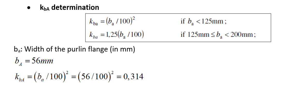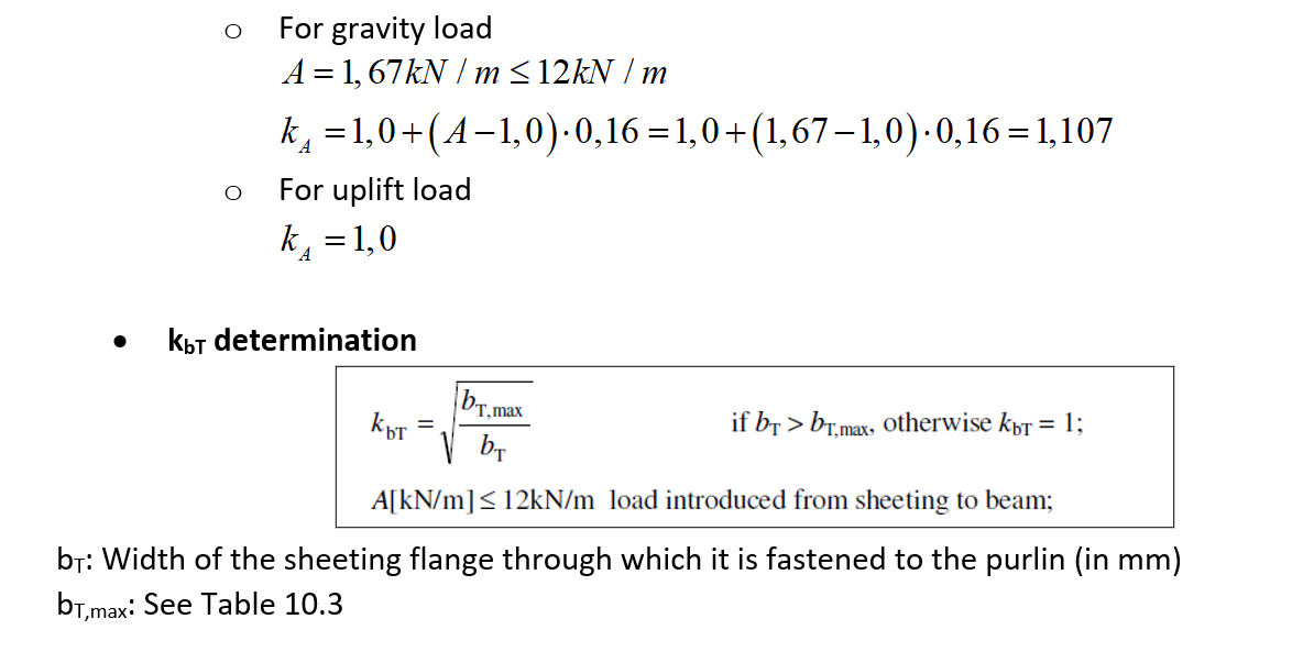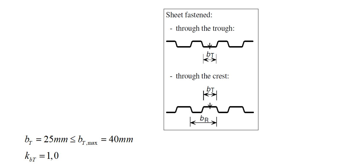 bT: Width of the sheeting flange through which it is fastened to the purlin (in mm)
