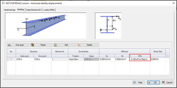 In Advanced Design, the rotational stiffness from sheeting to purlin can be considered when the Advanced Stability feature is enabled: