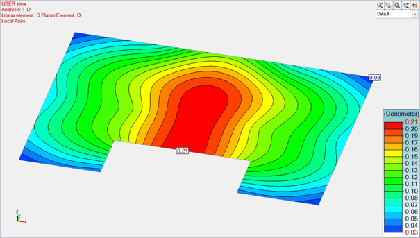 For the selected load case, we will check the graphical presentation of the displacement results, but the same methods as presented below can be used to display other types of results, ranging from internal forces and stresses to outputs related to the design of reinforcement (for example reinforcement areas or crack values).