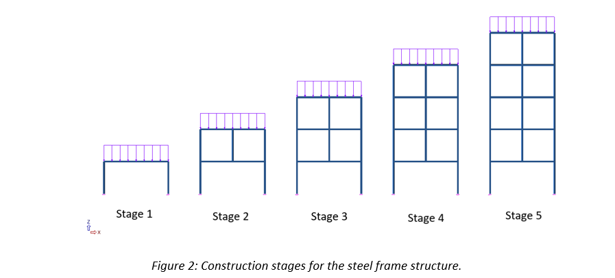 Two identical 2D frame structures are considered. A pin support is used on the left side and an advanced support on the right side for each frame (refer to Figure 3). Frame 2 carries double the load of frame 1.