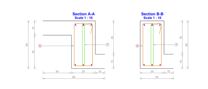 As with all other types of geometry, even for such an unusual beam as in the image above, the reinforcement is calculated automatically, taking into account all standard requirements.
