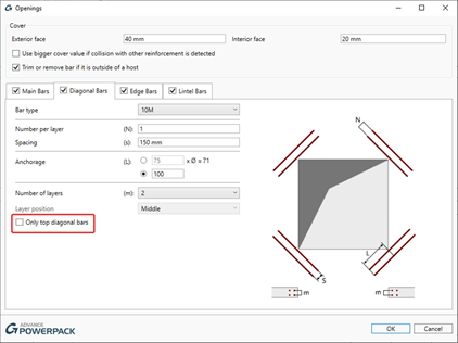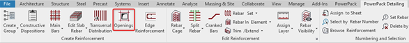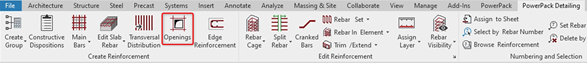 This Openings command is used to quickly generate constructive reinforcement around openings. It is available on the PowerPack Detailing ribbon.
