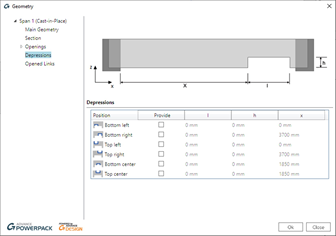 For beams, users may have to deal with several situations with openings such as placed within the beam, a depression … For all those situation, Graitec PowerPack provide some dedicated tools.