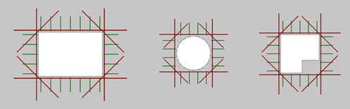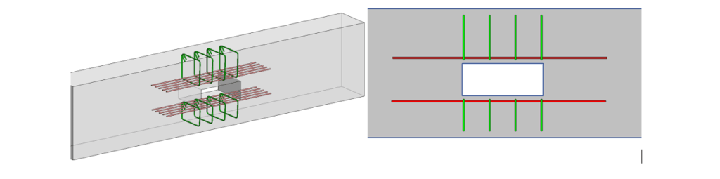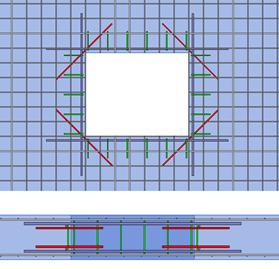 In the case of non-rectangular shapes of openings, the reinforcement is generated on its rectangular external perimeter