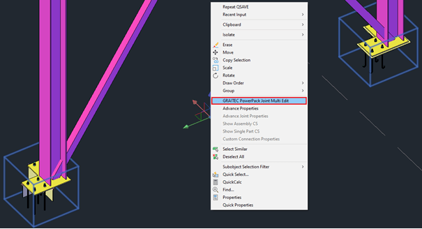 Right-click to open the active menu and search the “GRAITEC PowerPack Joint Multi-Edit” command
