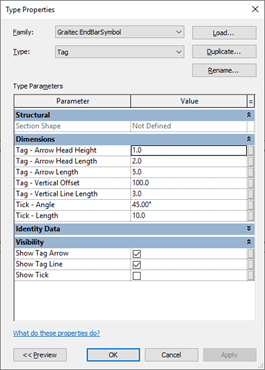 The family supplied with the program (Graitec EndBarSymbol) contains two types of symbols: